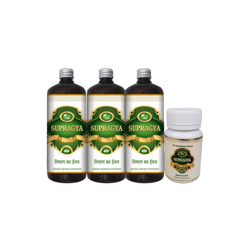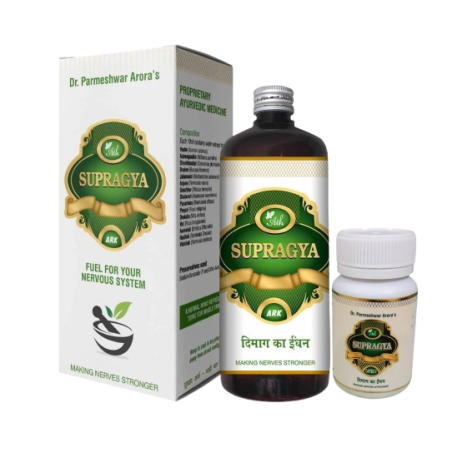 Supragya is an excellent mix of time-tested Ayurvedic herbs that replenish and strengthen the brain and the nervous system. A completely safe, simple and effective tonic, without ANY side-effects. Within 30 days, you will be feeling much more relaxed, calm, clear-headed and energetic.